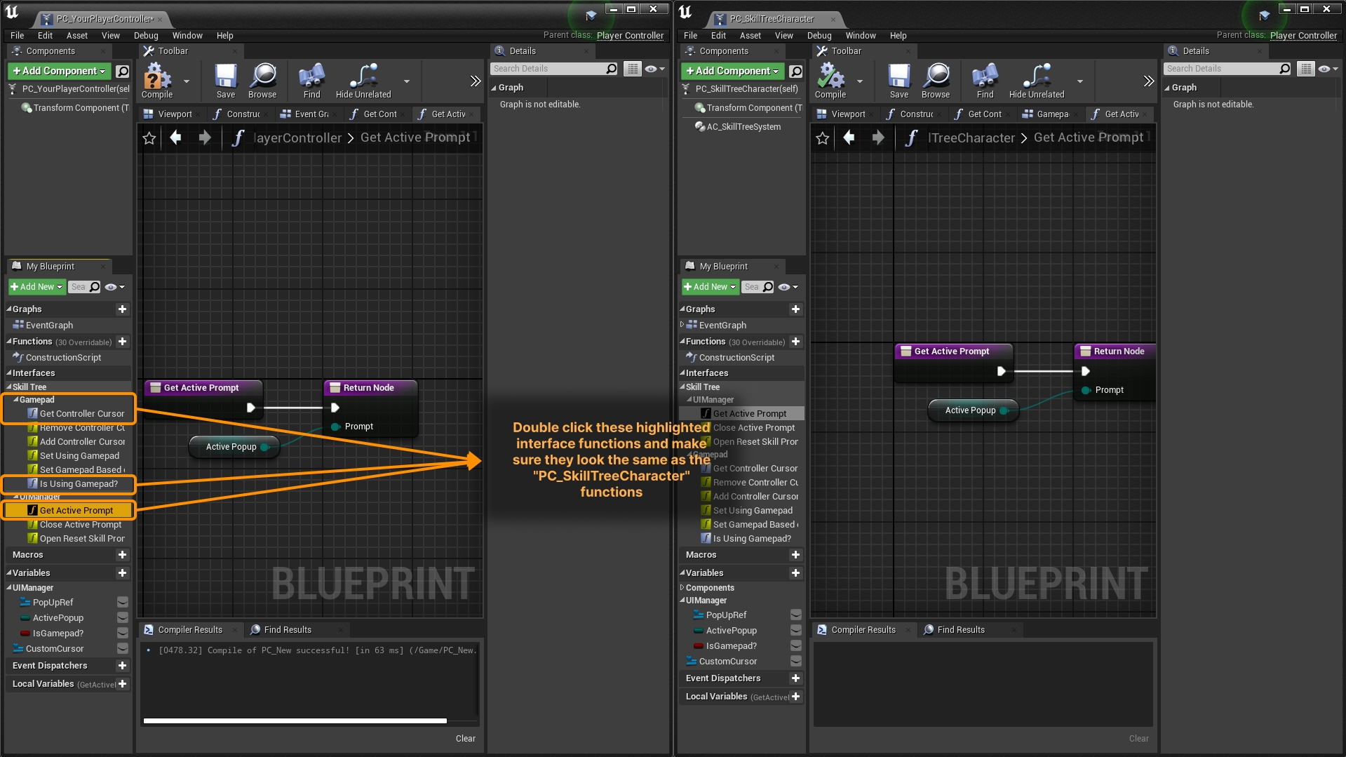 After copying over the variables, click on the highlighted interface functions and make sure they match the functions from the "PC_SkillTreeSystem".