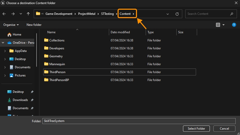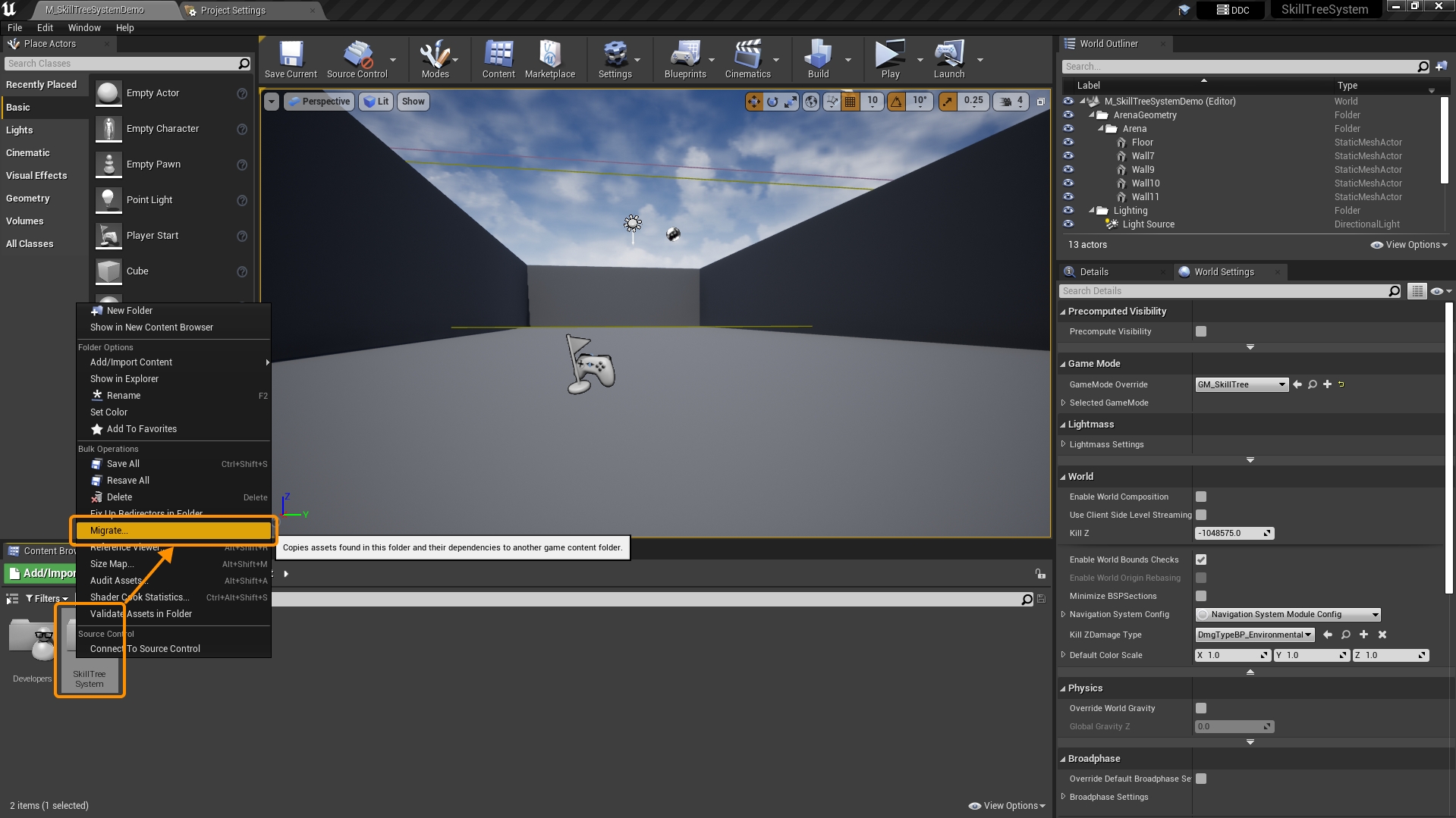 Create and migrate to your project. After creating the project, right click on the "SkillTreeSystem" folder -> Migrate -> Choose the content folder of the project you wish to integrate it to.
