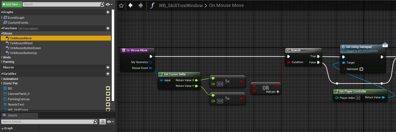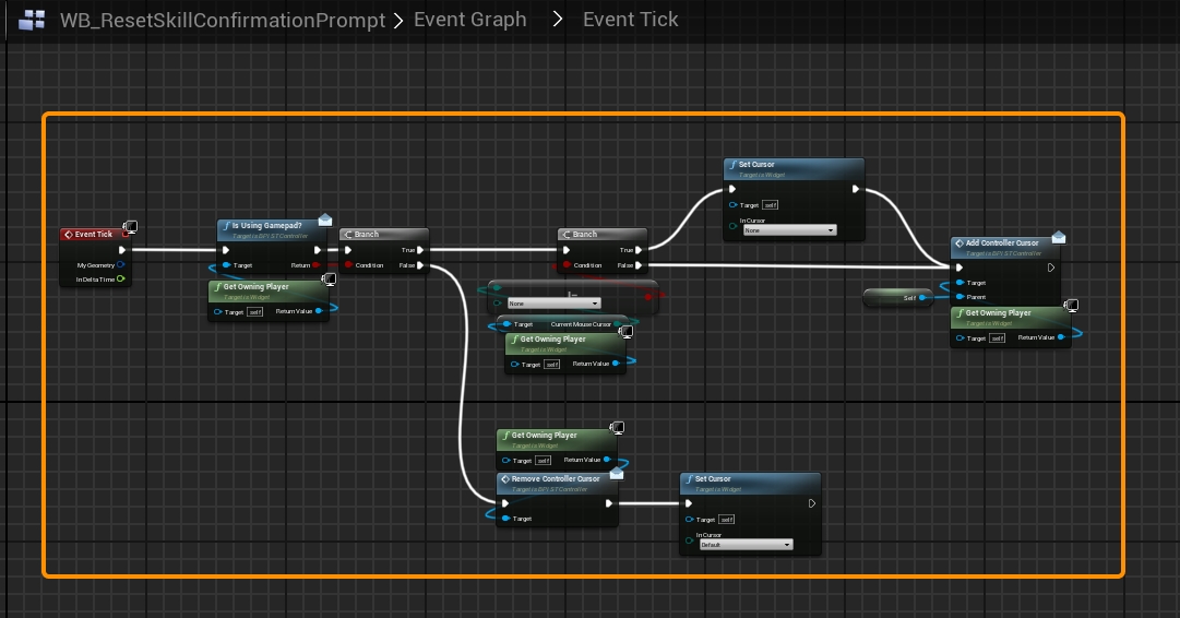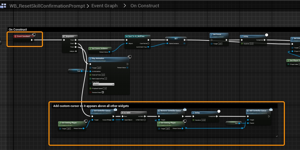 For your Skill Tree UI window (In my case I'm using the WB_SkillTreeWindow), I suggest adding these nodes to the construct:
