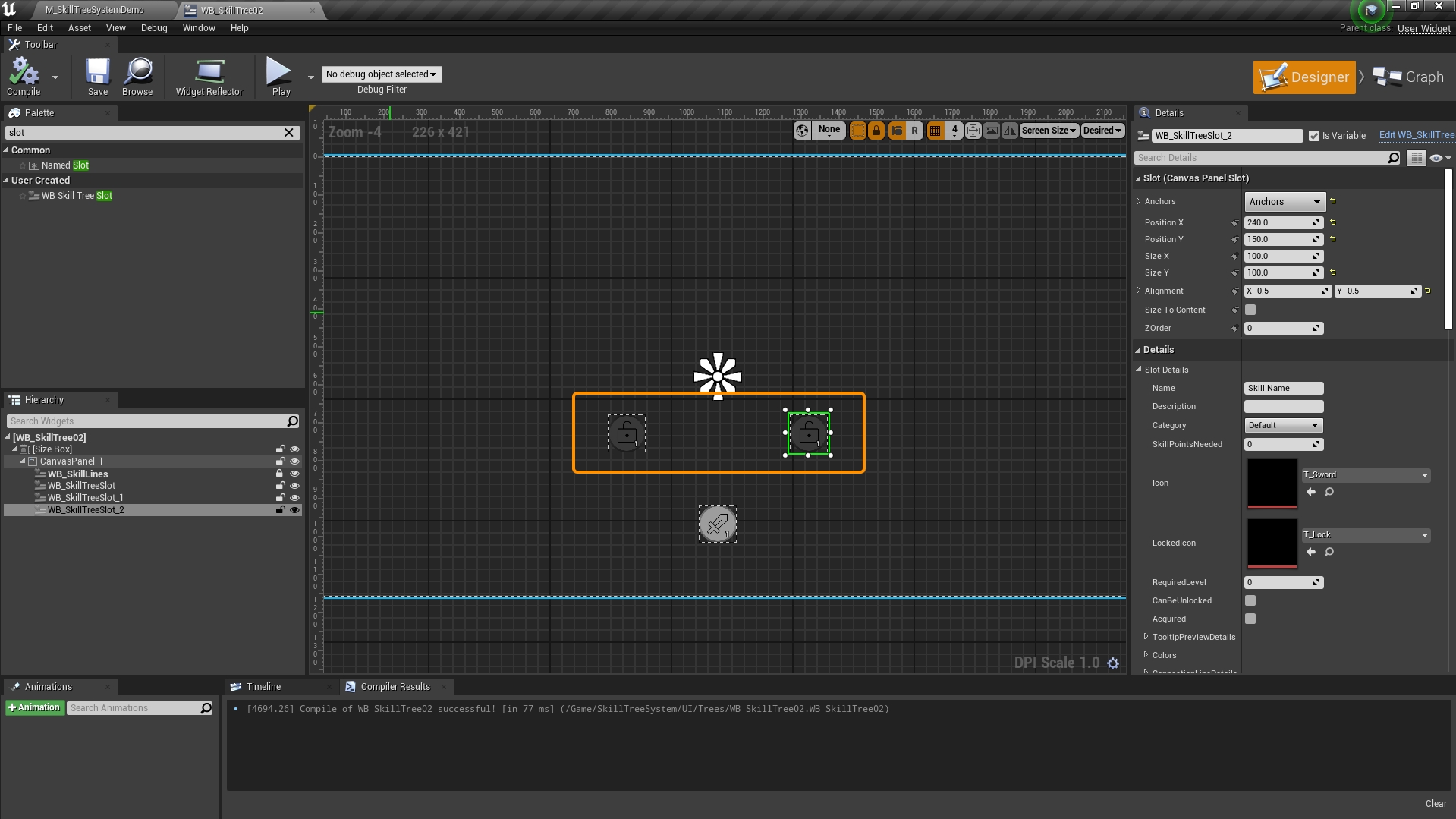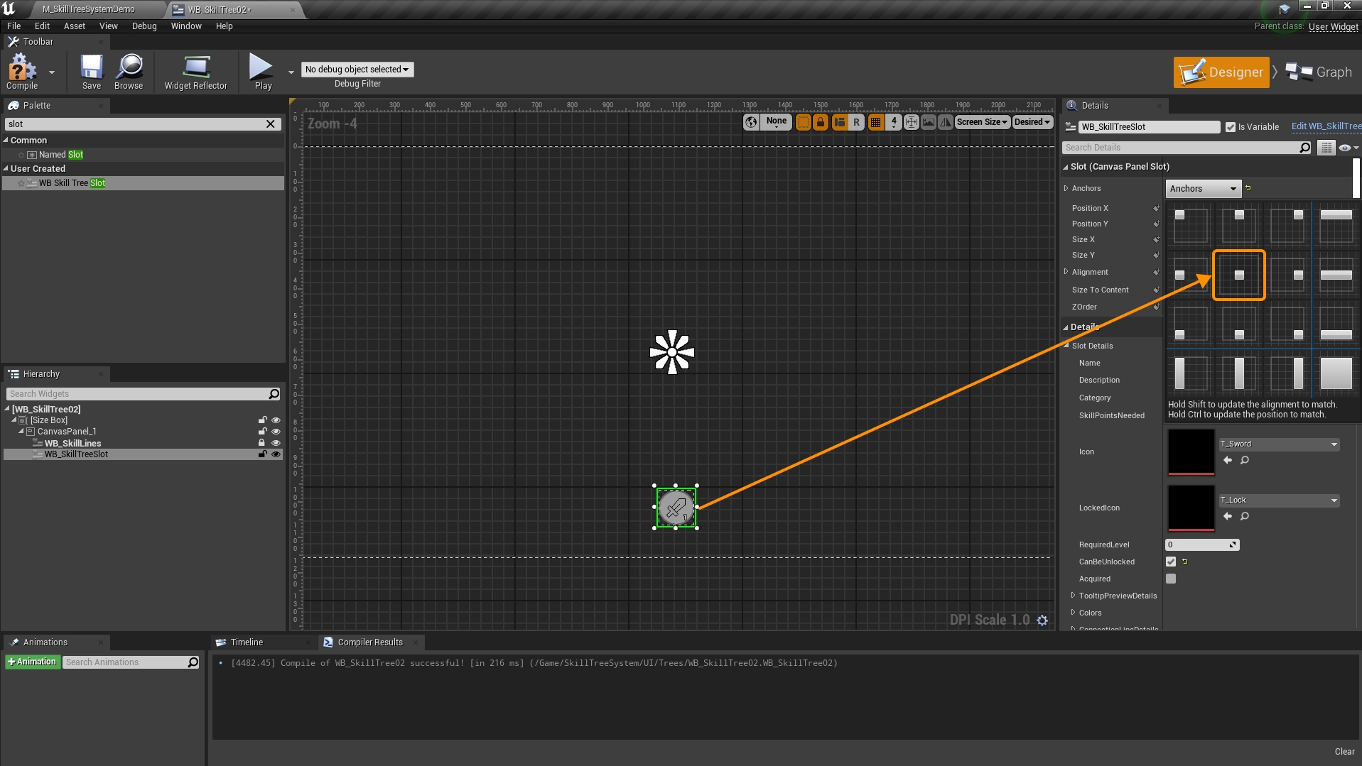 WB_SkillSlotto it. Ensure that it's anchored to the center (you can adjust this later, but remember you'll need to update the Line Offset value as well). If you don't plan on resizing the nodes, you can set Size to Content totrue.