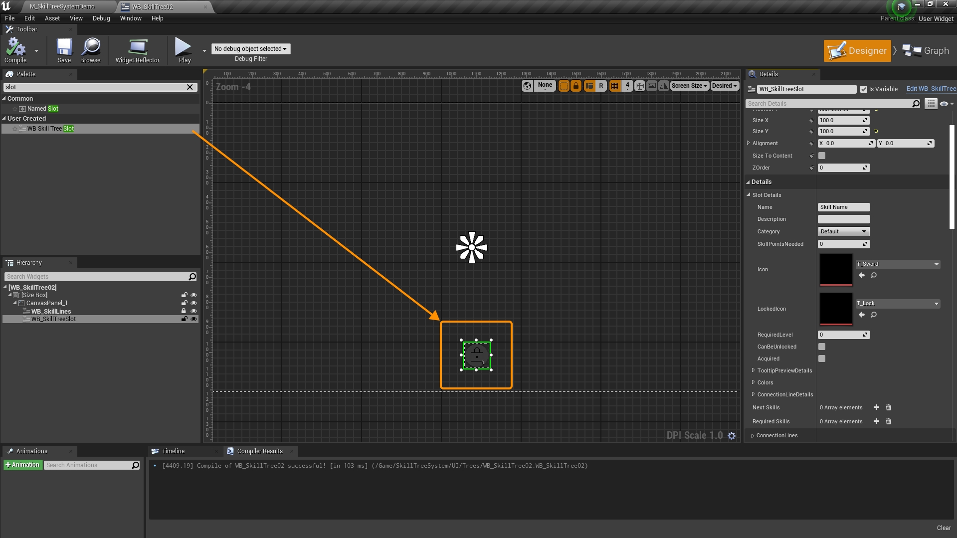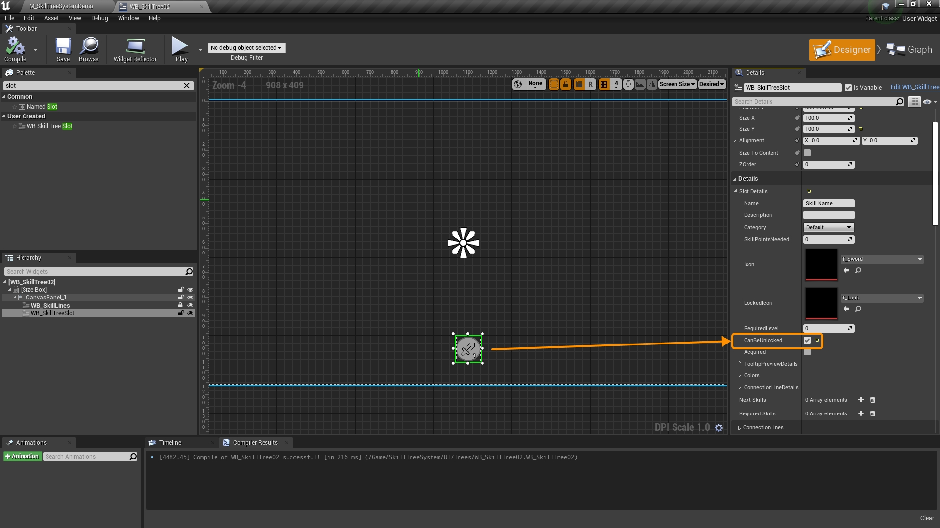 Open your newly created skill tree widget and add a